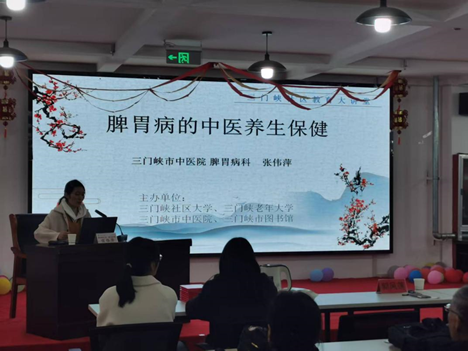 活动上半场,三门峡市中医院脾胃科专家张伟萍副主任为老年朋友们带来了题为《脾胃病的中医养生保健》的健康知识讲座。她结合丰富的实例重点介绍了脾胃病的日常管理、合理膳食搭配、科学锻炼方式以及保持良好心态的重要性。讲座内容贴近老年人实际需求,语言通俗易懂,现场互动频繁,老人们听得聚精会神,不时低头记录要点。